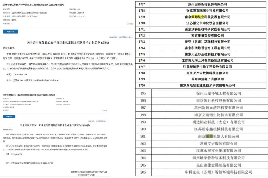 近日,全国高新技术企业认定管理工作领导小组办公室陆续公布2021年国家高新技术企业名单,我校大学生创业园孵化企业南京天际航空科技发展有限公司(负责人:徐飞,核电101班)、南京溪苏机器人有限公司(负责人:简栎洪,机械设计101班)2家企业名列其中;另有南京友博网络科技有限公司(负责人:张翔,网络071)、南京宁馨净化工程有限公司(负责人:马健,环境101)、南京中谛互联科技有限公司(负责人:钱福祥,K车电气101)顺利通过高新技术企业期满复审。