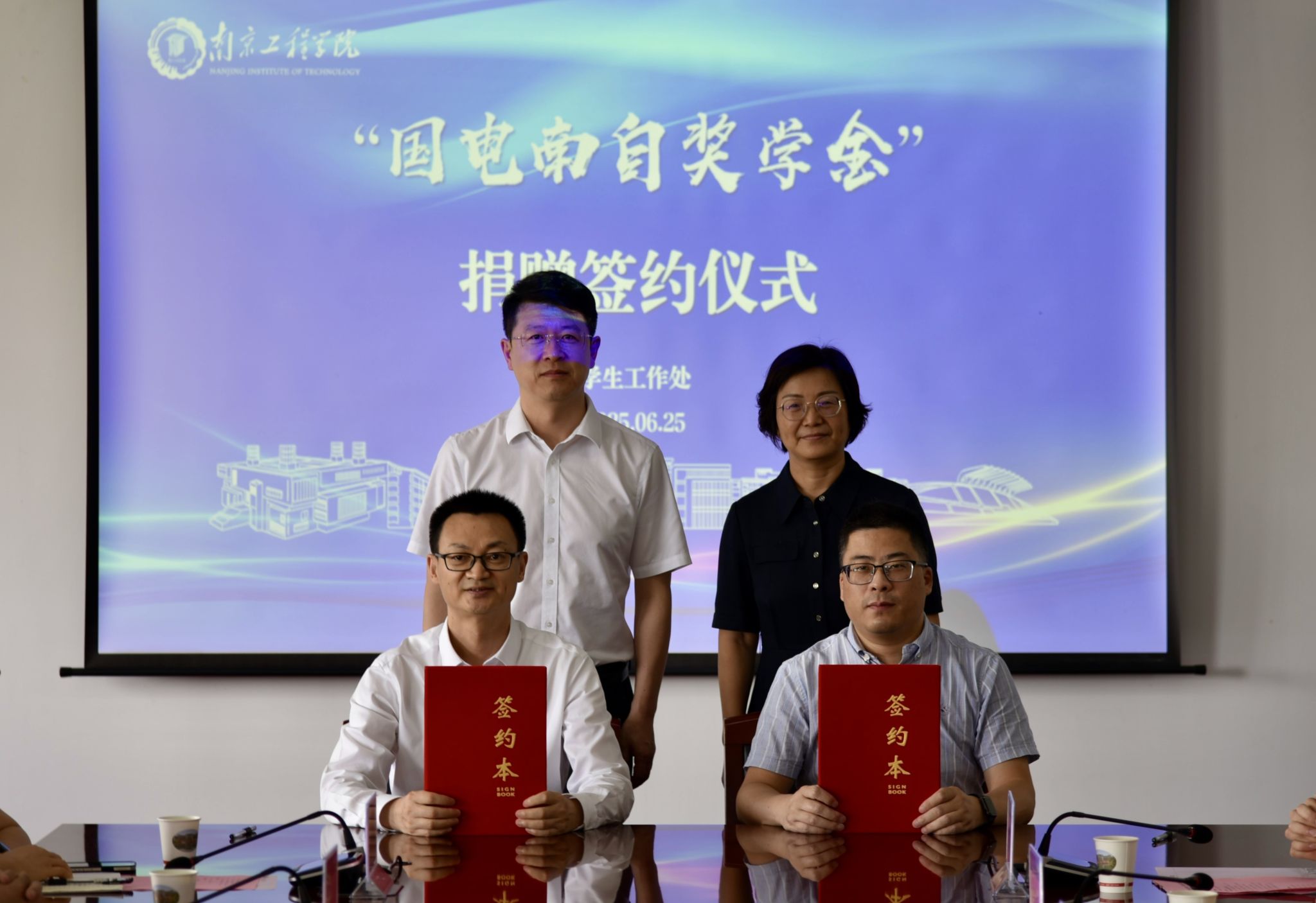 6月25日,“国电南自奖学金”捐赠签约仪式在至勤楼?行政中心北楼303会议室举行。国电南京自动化股份有限公司党委委员、副总经理、总工程师蒋衍君,党委常委、副校长汪群出席活动并讲话。
