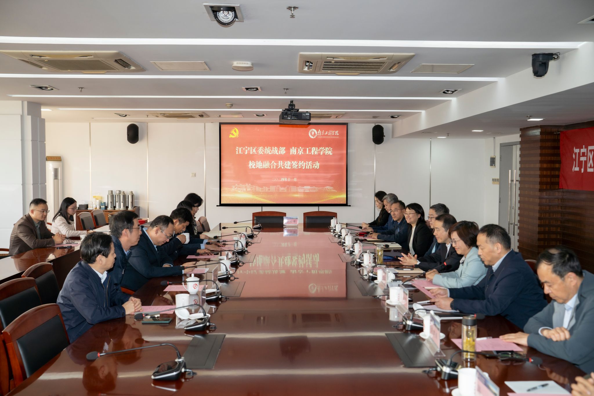 11月12日下午,我校与江宁区委统战部举行统一战线工作校地融合共建签约仪式。江宁区委常委、统战部部长孙兆金,区委统战部常务副部长张斌;我校党委书记孙爱武,党委常委、副校长汪群,副校长包永强等出席活动。江宁区委统战部相关领导、凯发各民主党派、统战团体负责人及代表参加活动。签约仪式由党委常委、组织部部长、统战部部长聂邦军主持。