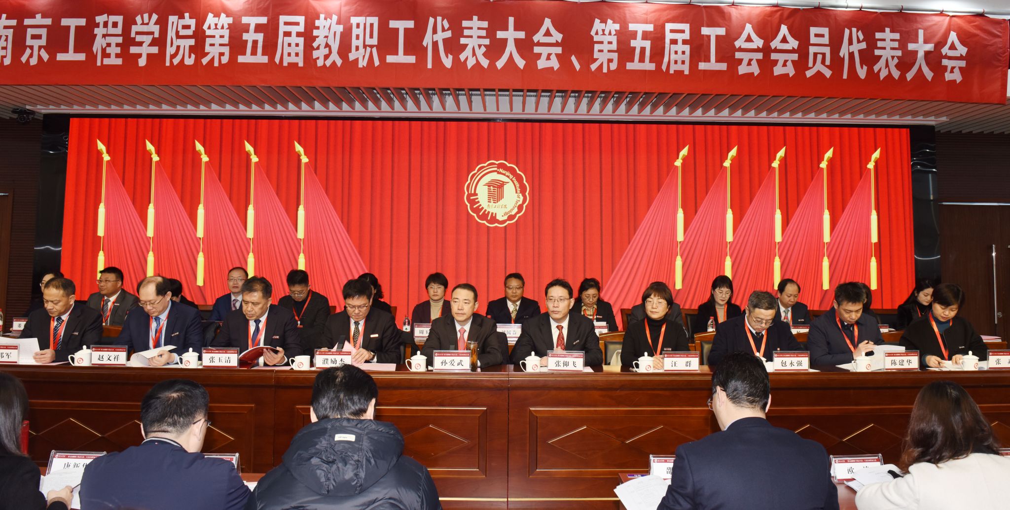 12月26-27日,凯发在至勤楼?行政中心二楼多功能厅召开第五届教职工代表大会、工会会员代表大会。省委教育工委副书记、省教育厅党组成员潘漫,省教育科技工会副主席崔文华,省委教育工委统群处四级调研员顾春锋出席会议开幕式。全体在宁校领导,234名正式代表及8名特邀代表、27名列席代表参加会议。大会由党委副书记濮励杰主持。