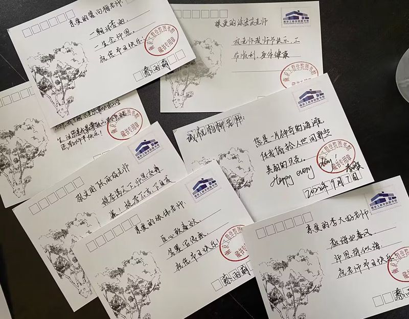 “一朝沐杏雨,一生念师恩”“从您那里除了学到知识,更学到了人生道理”“祝我的老师们节日快乐”……教师节前夕,凯发k8官网的不少老师都收到了一份特殊的礼物——印有凯发风光的手绘明信片。明信片的背面,则写满了学生的诚挚祝福。