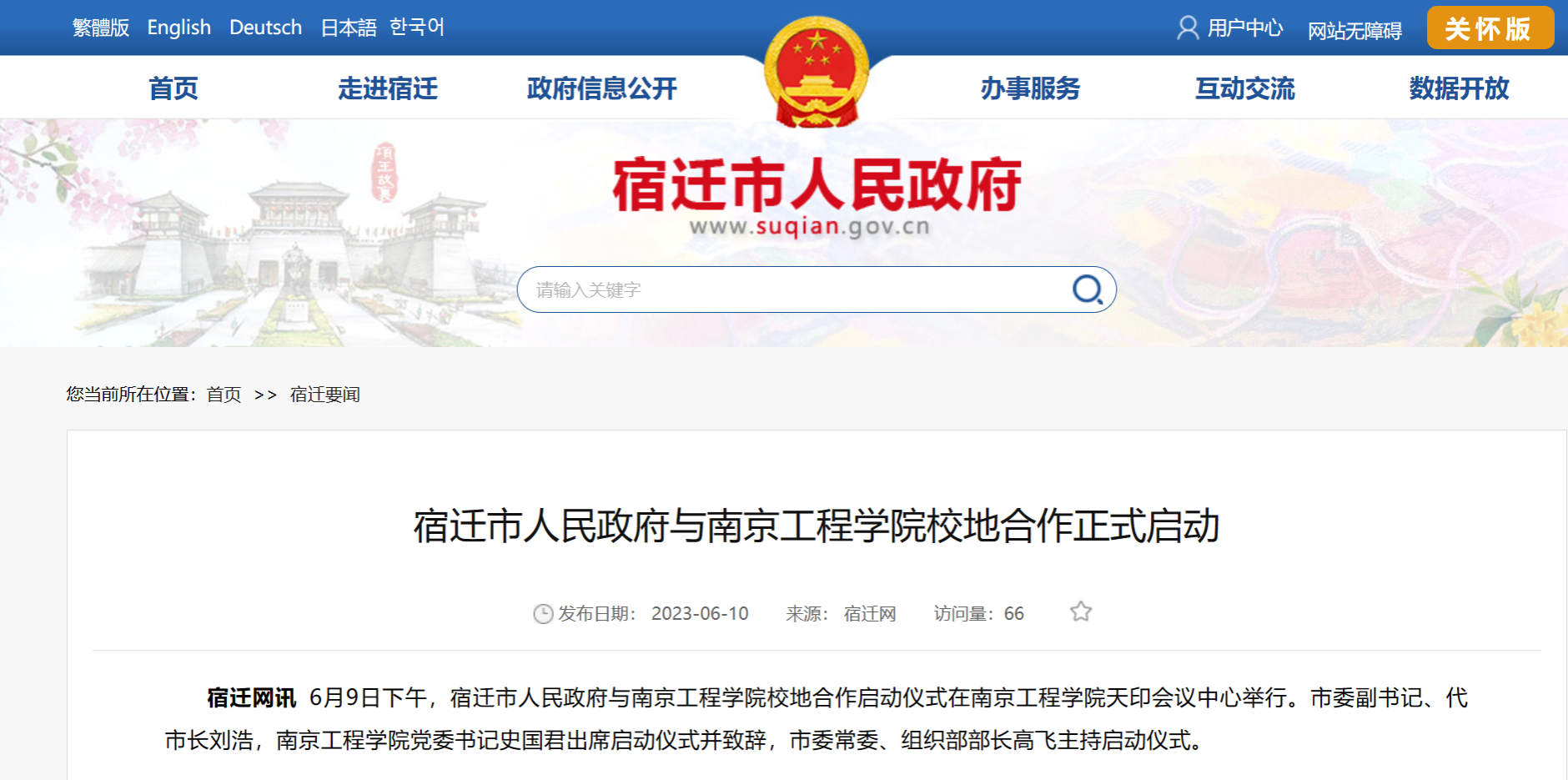 新闻链接:http://www.suqian.gov.cn/cnsq/sqyw/202306/4b33b037adf84ef792fe90616a1800c6.shtml