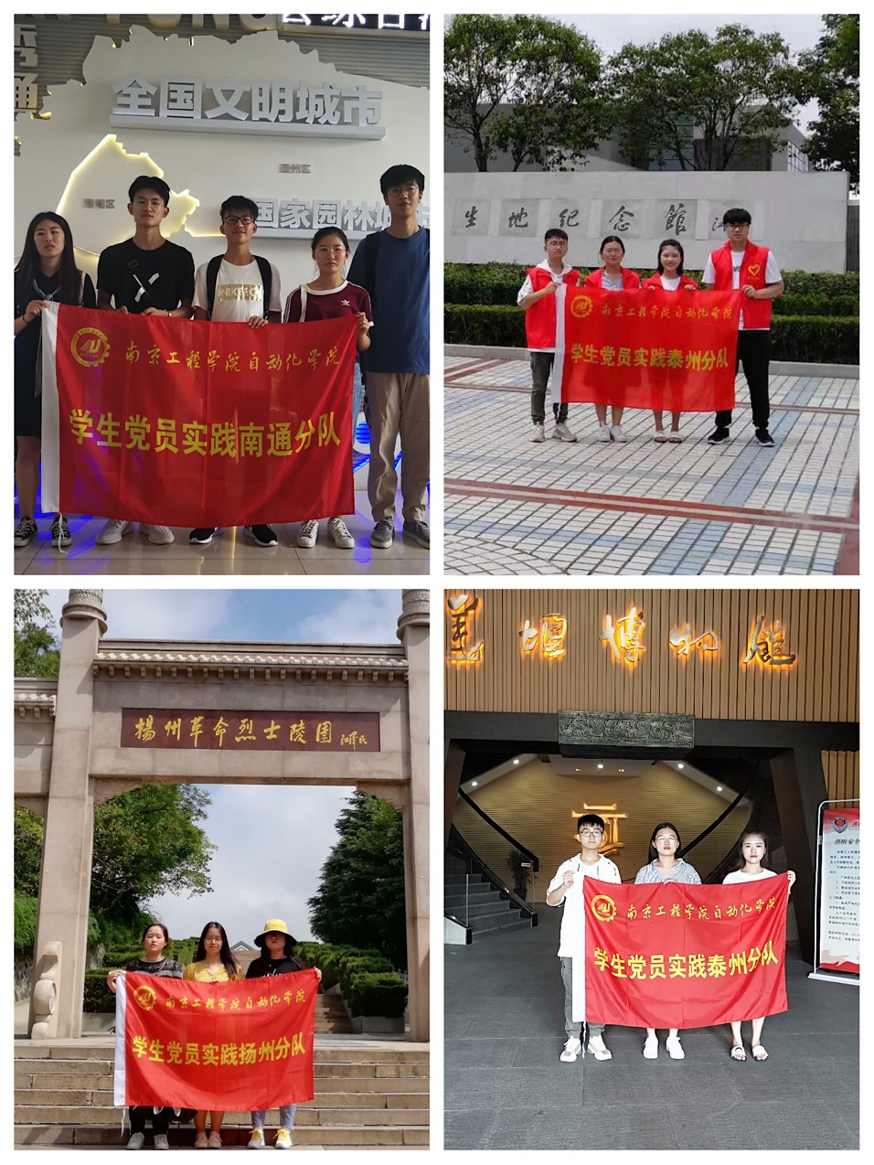 为庆祝建国70周年,重温历史、缅怀先烈、不忘初心,学习并传扬习近平新时代中国特色社会主义思想理论,凯发k8官网自动化学院成立了一支以党员为主力军的暑期社会实践团队,团队成员分组分别前往南通、泰州、扬州等地,于7月下旬至8月上旬开展他们的红色之旅。