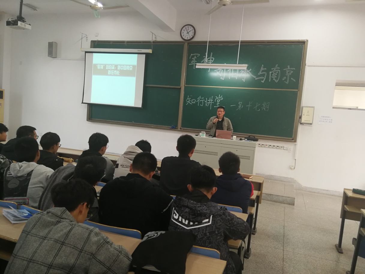讲座伊始,陈教授从刘伯承与南京的故事开始讲起。围绕“军神的由来”、“川中名将”、“参谋军机”、“长征建功”、“抗日烽火”、“解放战争”、“主政南京”、“南京办学”等,以独特视角、生动案例、典型故事诠释元帅刘伯承的一生。整场讲座深入浅出、通俗易懂。“今天的幸福生活是革命先辈们用生命和鲜血换来的,作为新时代大学生, 我们不能忘记他们,要在日常学习生活中将红色精神发扬好,将红色基因传承好,将小我融入大我,在谱写中国梦的华彩篇章中贡献青春力量。”一位参与讲座的学生说道。