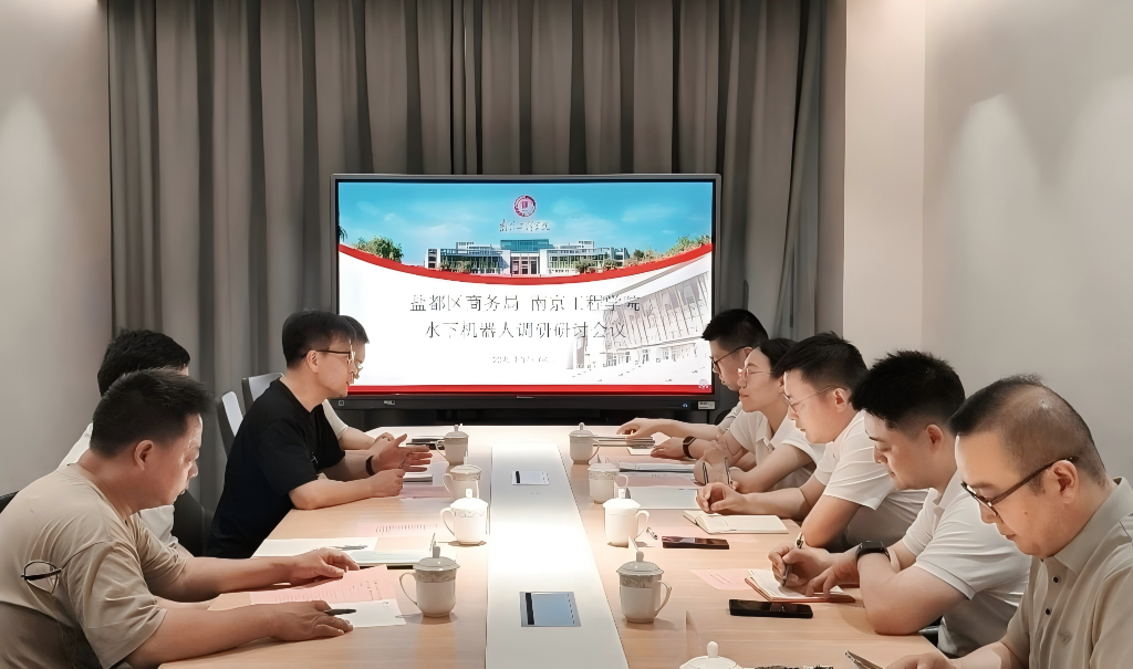 会上,薛静肯定了学院在技术研发方面具有深厚积累和创新能力,表示政府将积极引导校企深度合作,促进科研成果转化,服务产业发展。赵大伟对学院在2025“才来盐都,创享未来”创新创业大赛中的创新项目《蟹塘守护者——基于仿生鱼机器人的全自动螃蟹计数与健康监测系统》给予高度评价,指出水产养殖行业亟需智能化技术提升效益,该项目能有效解决河蟹养殖中的水下监测难题。陈巍重点介绍了学院团队在水下机器人领域的研究成果,提出了水下机器人在水产养殖领域的应用技术方案。