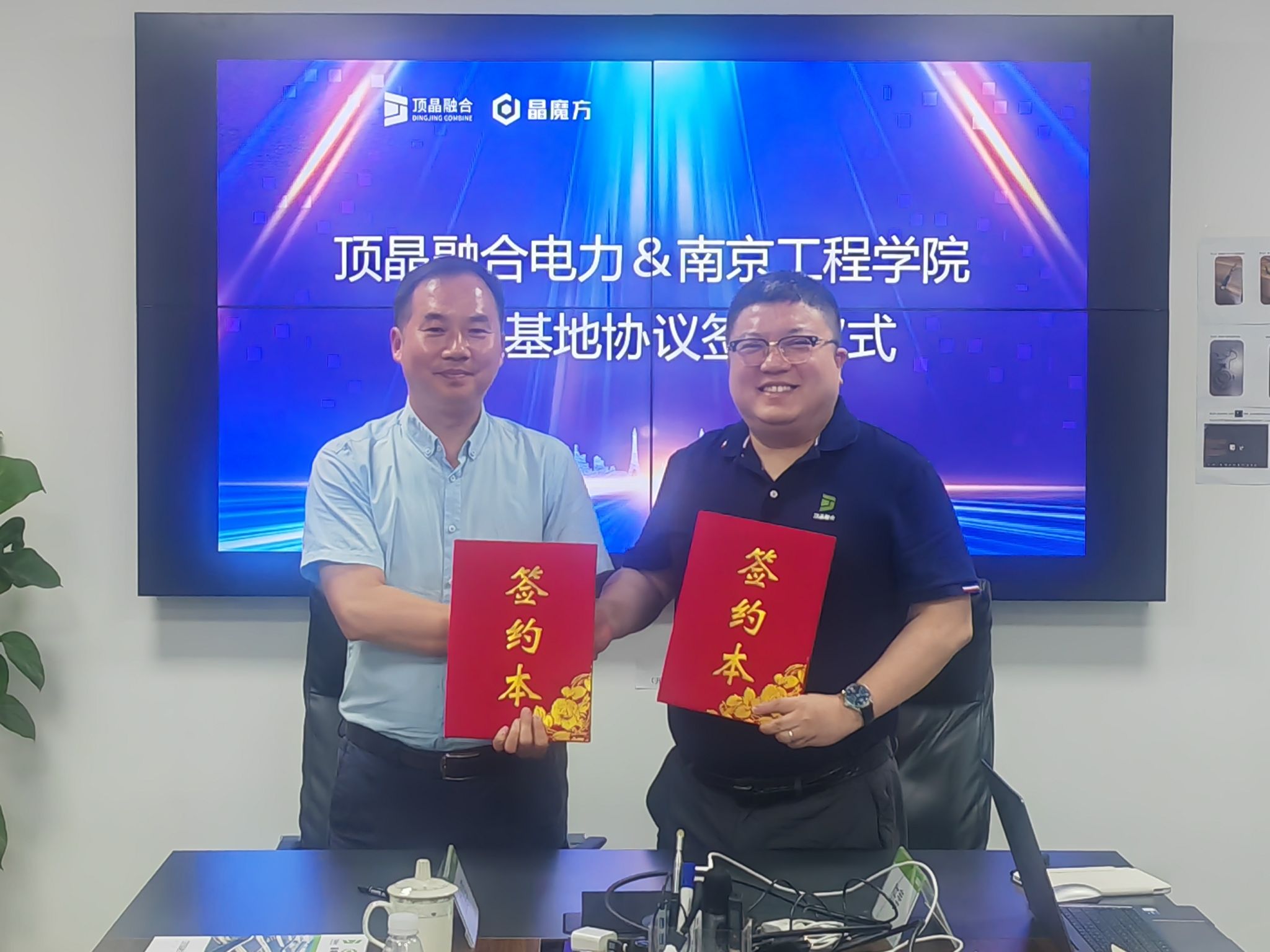 会上,王雪飞介绍了学院近年来的学科建设、人才培养成果及毕业生就业情况,希望与公司进一步打通校企人才供需对接渠道,在人才培养、实习实践、项目合作、成果转化等方面深化合作。杨成立详细介绍了学院专业特色、师资力量及学生专业技能优势,期待双方共同探索“艺术+科技”“设计+工程”的跨领域合作新模式。公司董事长、校友王益表达了对母校培养的感恩之情,详细介绍了顶晶融合公司的业务范围、发展战略、企业文化以及对人才的需求标准,期待与学院在新能源项目的视觉传达、用户体验设计、品牌形象塑造等方面开展实质性合作,实现互利共赢。今年刚入职的三位毕业生分享了心得体会。会上,双方就如何精准对接企业需求、优化人才培养方案、共建实习实践基地、开展产学研项目合作、举办行业前沿讲座等方面达成了广泛共识,并签署《共建高校毕业生就业基地协议》。